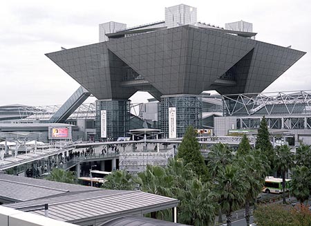 Mässhallarna i Tokyo Big Sight. Konerna är inte utställningsplatser.