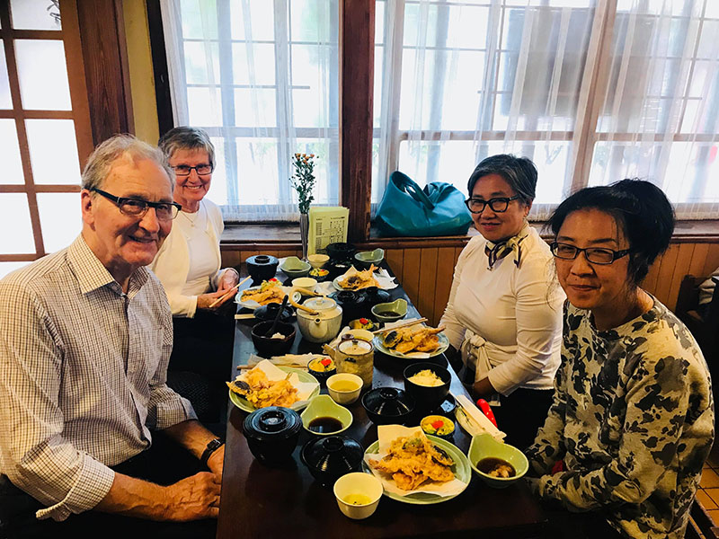 I det här området är det populärt att äta tempura. Det är t.ex. räkor eller grönsaker som är doppade i en smet och sedan friterade. Tempura är mycket gott! Vi åt i en traditionell och mycket känd restaurang och det smakade mycket bra.