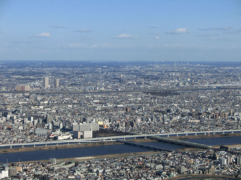 Utsikten är helt enkelt underbar. Från Skytree en klar dag ser du minst 10 mil.